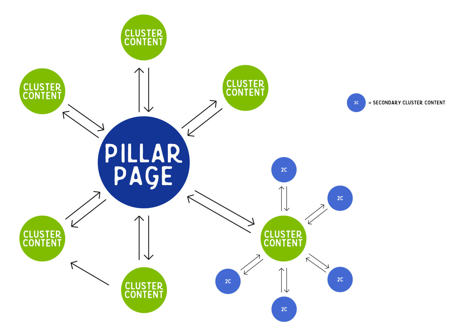 صفحات کلاستر به صفحات جزئيتر اطلاق ميشود که حول يک موضوع خاص که در صفحه پيلار مطرح شده، ميچرخند. اين صفحات معمولاً محتواي دقيقتر و تخصصيتري را ارائه ميدهند. آنها به طور مستقيم به صفحه پيلار لينک ميدهند و کمک ميکنند تا کاربر بتواند به اطلاعات جزئيتري دست يابد.